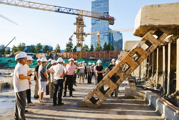 会后,参会嘉宾集体前往中海宏洋绍兴公司越湖雲起项目现场,实地观摩超前预制斜向支撑技术的实际应用情况。中海越湖雲起项目作为绍兴地区首批系统引入该技术的住宅工程,展现了中海地产一贯的高标准施工理念与工艺工法。通过现场讲解与工艺展示,与会人员对该技术在中海项目中的高效落地与优质效果有了更直观、深刻的认可。